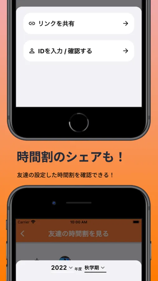 - 友達と時間割を共有することもできます。