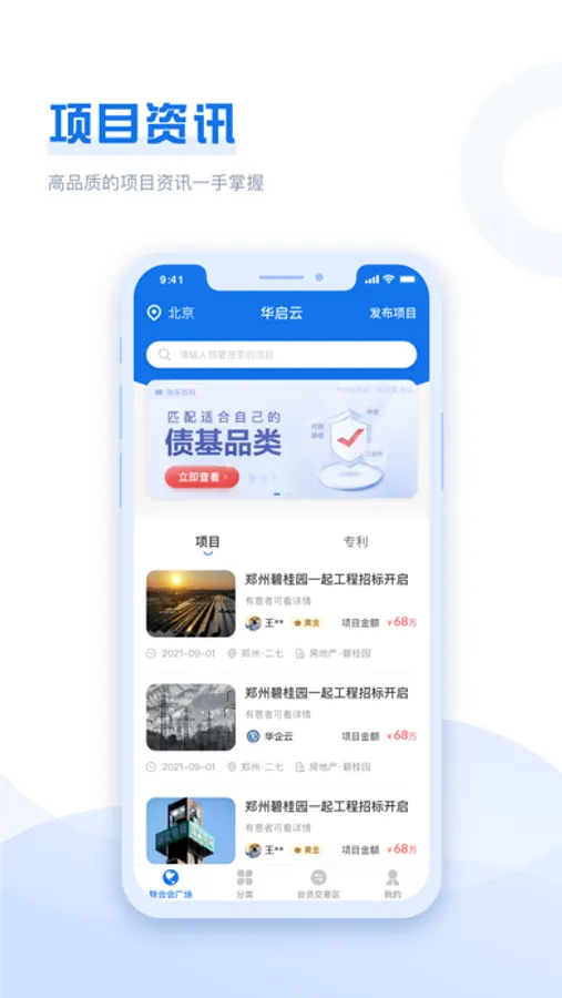 “华商城APP”内分资金库、项目库、专利库、新产品库、法律咨询、名医库、教育资源库等,让有资金的找项目,有项目找产品,有产品的找专利,有专利的生产新产品,开发新产品的找资金,螺旋形发展,不断改变产业结构,提升产能。同时也为华商设立了法律、教育、医疗方面的服务平台。