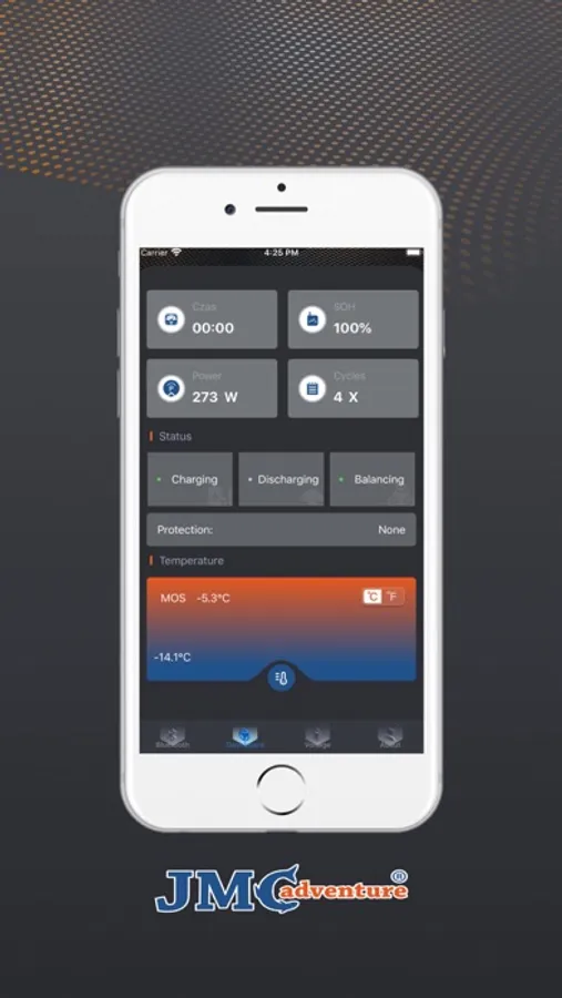 Inteligentny system zarządzania baterią jmc-adventure jest połączony z aktywnym korektorem przez Bluetooth, aby monitorować stan baterii, zbierać, przechowywać i przetwarzać informacje podczas pracy na baterii w czasie rzeczywistym, wymieniać informacje z urządzeniami zewnętrznymi oraz zapewniać bezpieczeństwo i łatwość użytkowania systemy baterii litowych. A kluczowe kwestie związane z żywotnością, aby osiągnąć przedłużoną żywotność baterii, zwiększają stabilność baterii po grupie.