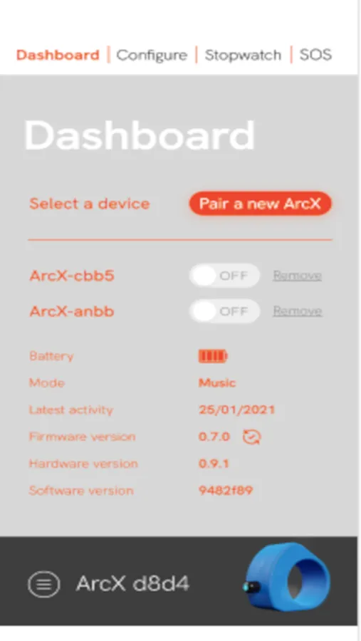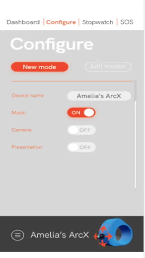 Configure ArcX in different profiles to control multiple devices such as sports cameras, wireless speakers and smart glasses.