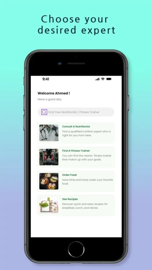 to search for fitness trainer and Nutritionist and and share information with them to add to user a deit planner and exercises