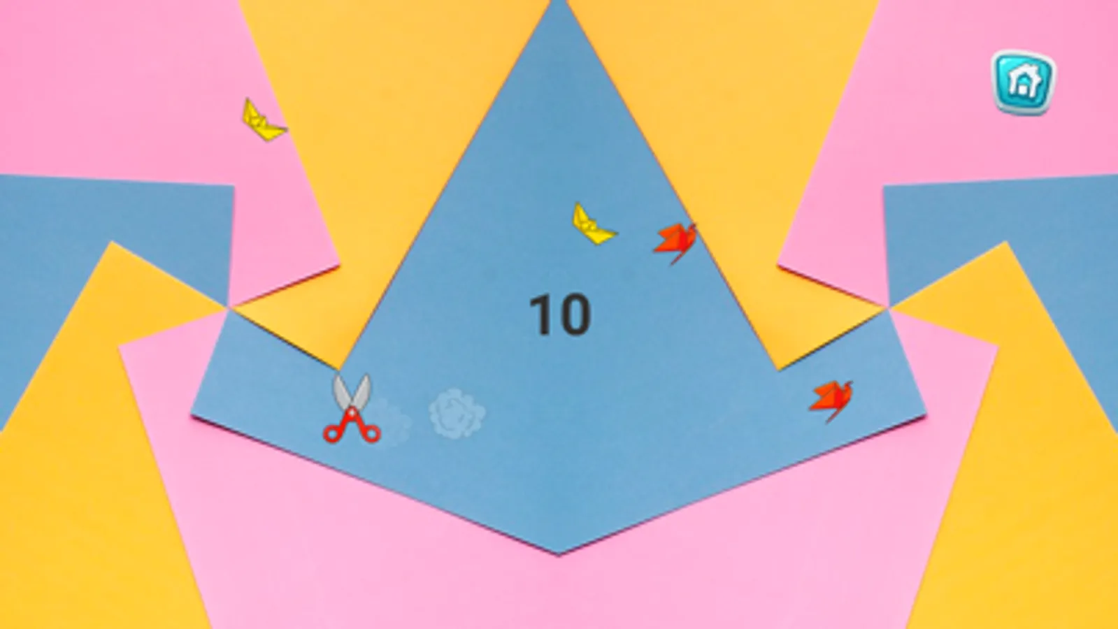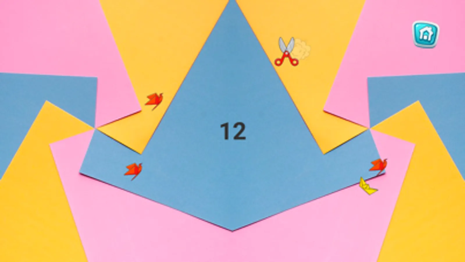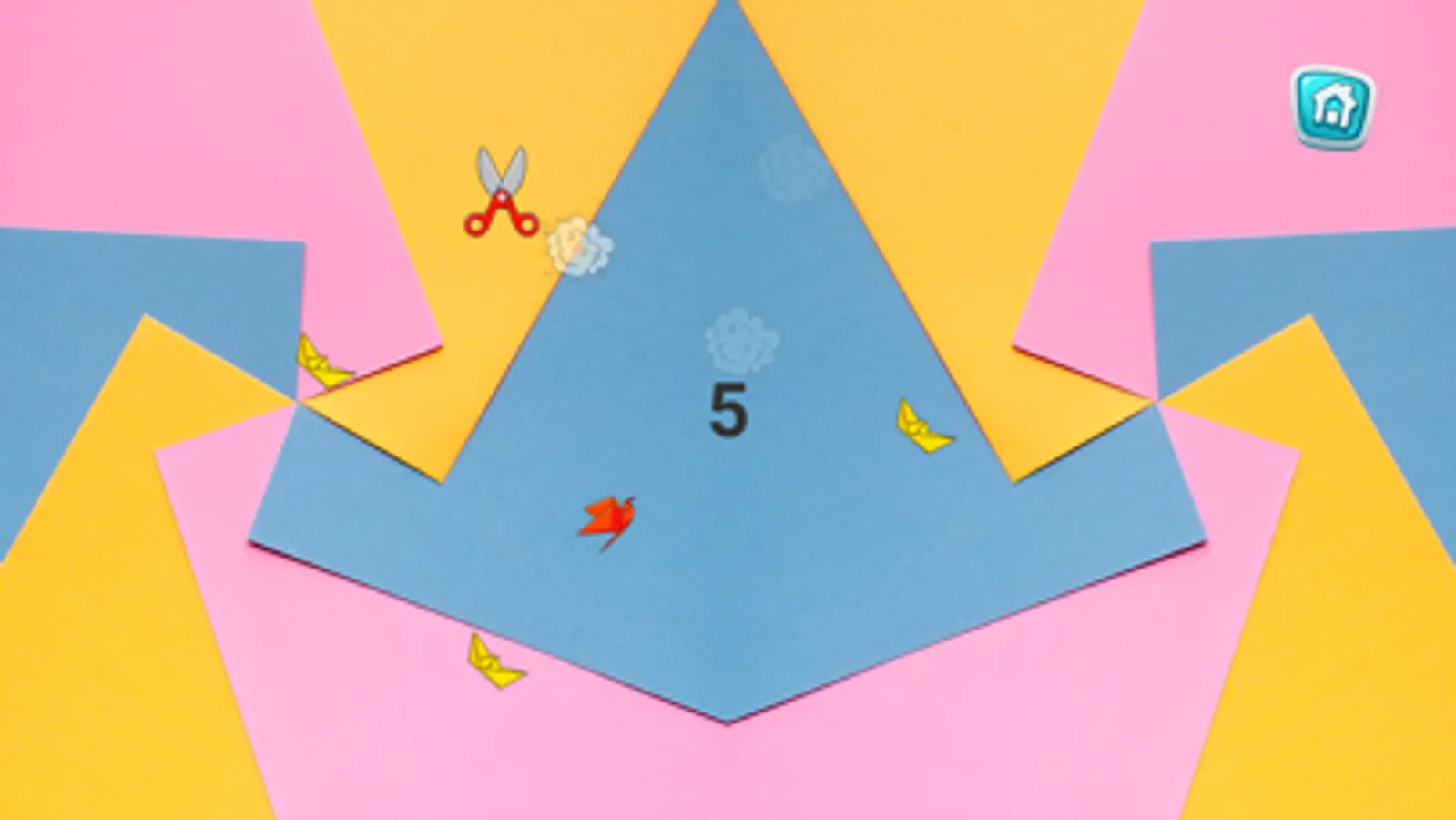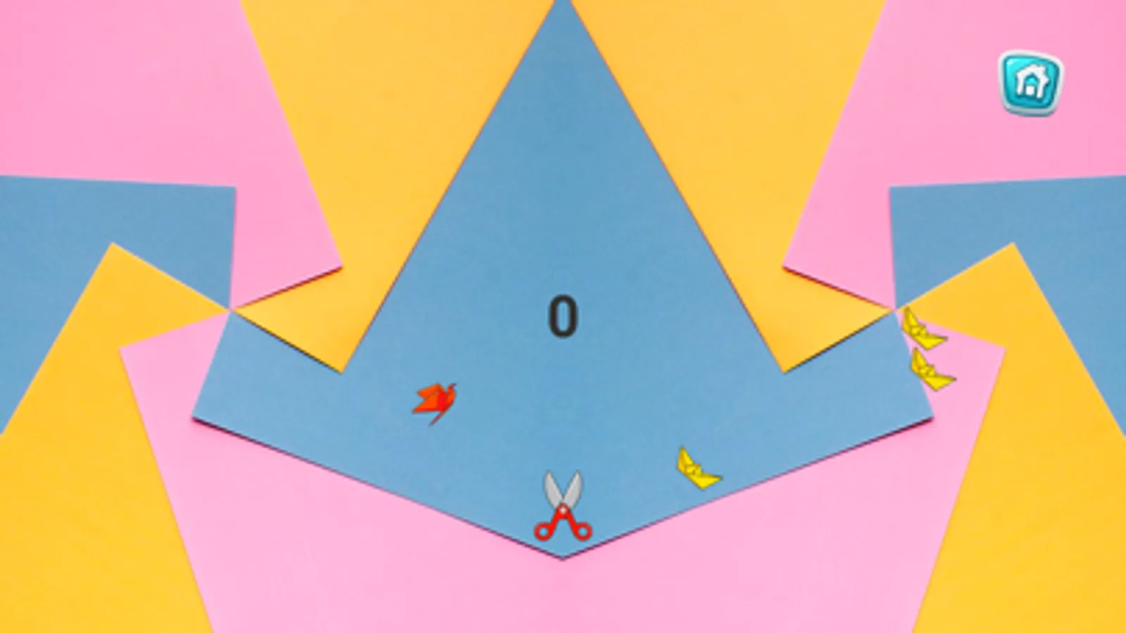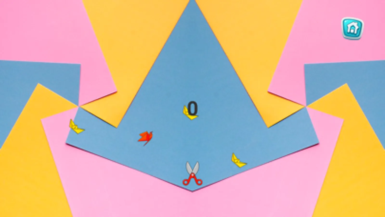 Touch and drag the scissors to control it. Your task is to cut into the paper boat and not cut the paper crane.