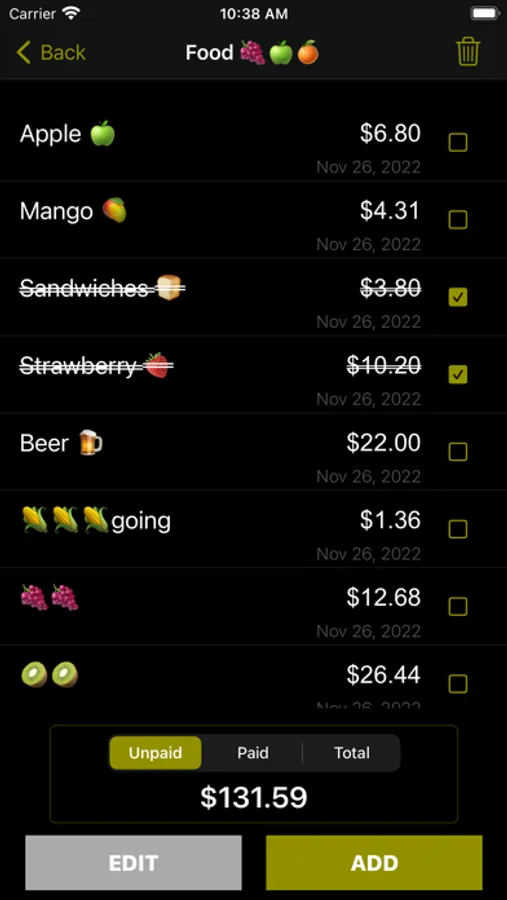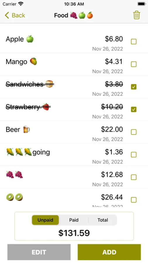 + Can input expense of item directly or input number of items & price for each item, then expense is calculated.