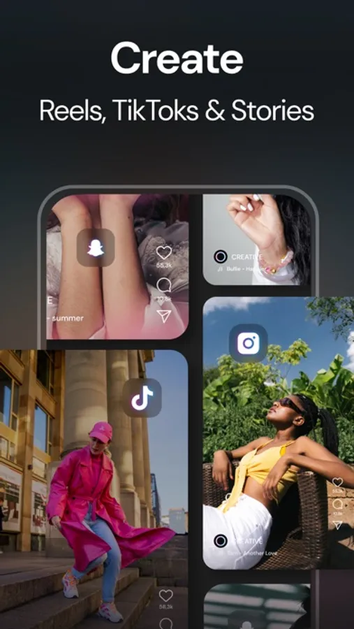Perfect for TikTok, Instagram and YouTube. Don't waste time choosing music and editing the video — CREATIVE will do it for you.