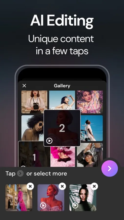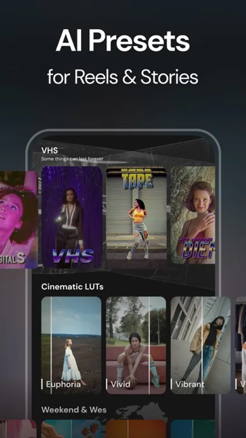 Our app allows you to effortlessly combine your videos and photos, add cool transitions, aesthetic effects, and filters, and sync them to the beat of the latest music trends.