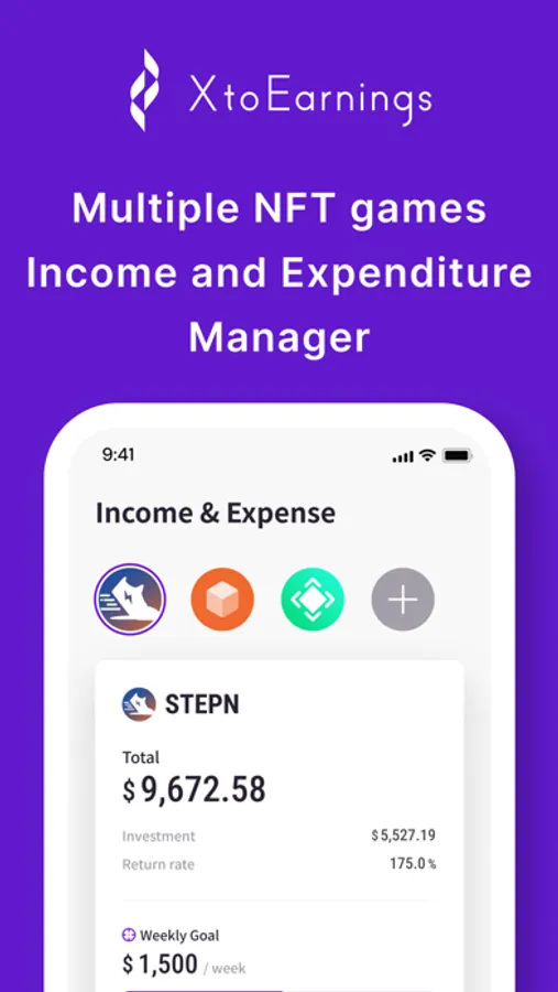 XtoEarnings is a Revenue Management App for NFT games, basically free. You can manage your cryptocurrency asset you get earning of Web3 games with this only App. Set your Earning goals of Web3 games and track them with our simple, easy-to-use App!