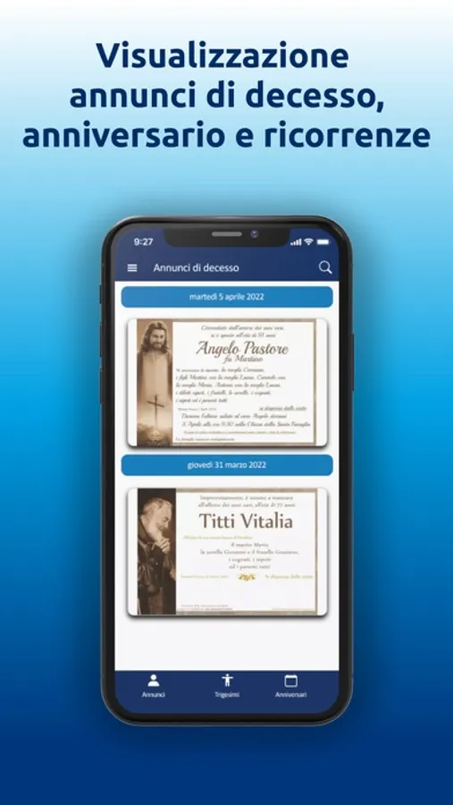 • giorno per giorno, gli annunci di decesso gli anniversari e i manifesti di partecipazione.