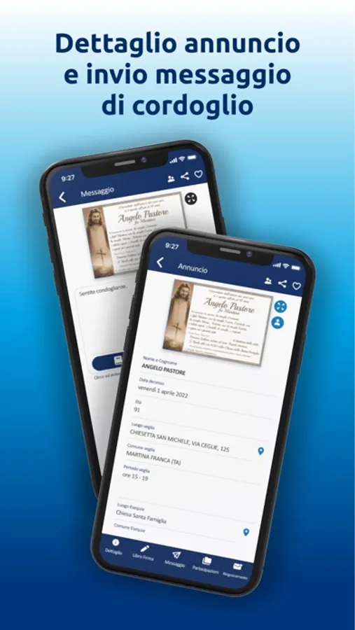 • la geolocalizzazione tramite Google Maps del luogo della veglia, delle esequie e della tumulazione