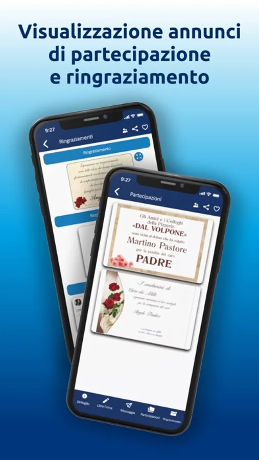 La nostra app è affidabile e seria, vi accompagna virtualmente nel momento del cordoglio, proponendovi una vasta gamma di servizi tra i quali anche una sezione dedicata dove è possibile prendere visione di tutti i nostri partners e mettervi in contatto con loro direttamente dal tuo smartphone e tablet!