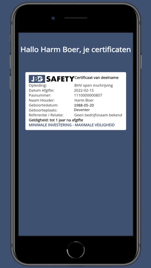 Met deze app heeft u de certificaten die u behaald heeft bij JBG Safety altijd bij de hand!