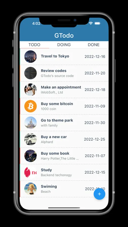 Tasks can be managed with TODO, DOING, and DONE statuses