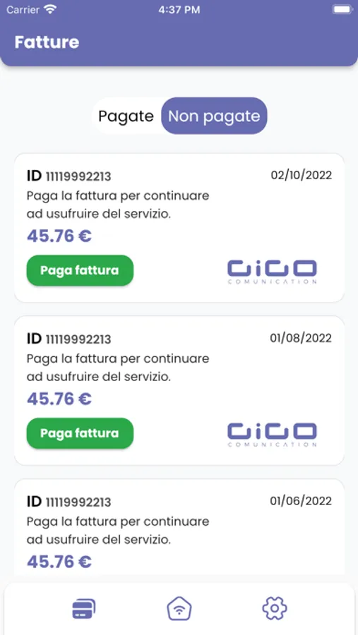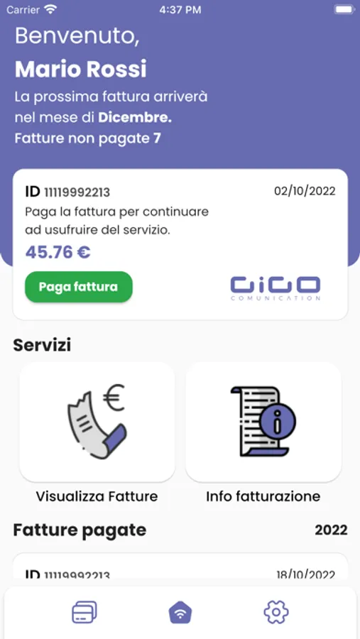 Da questa app puoi visualizzare o pagare le tue fatture di Gigo.