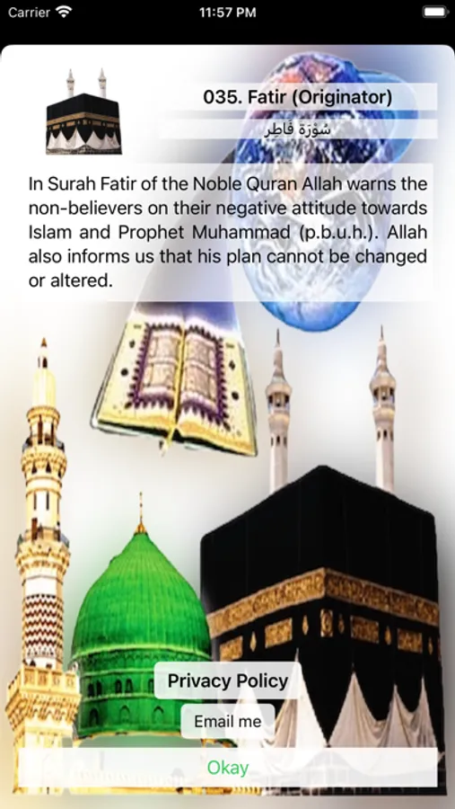 6. Info section to help you learn about each Surah