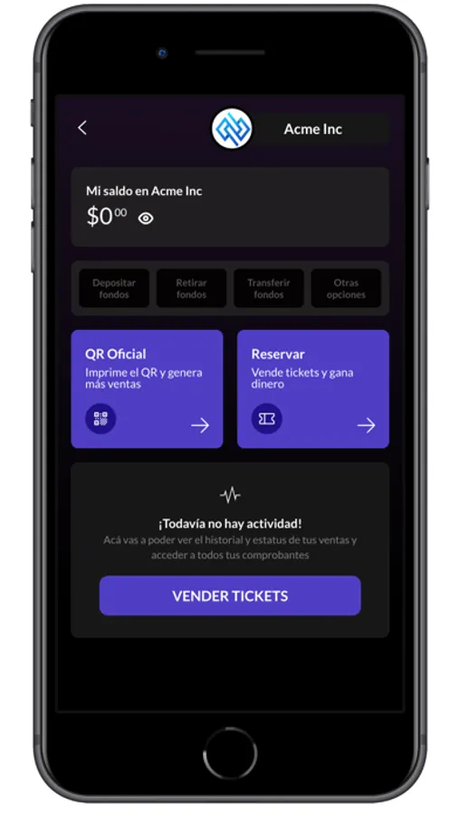 La aplicación te permite, en forma simple e intuitiva seleccionar el show o evento, los tickets disponibles por categoría y conocer el ingreso que podrás generar antes de completar la venta.