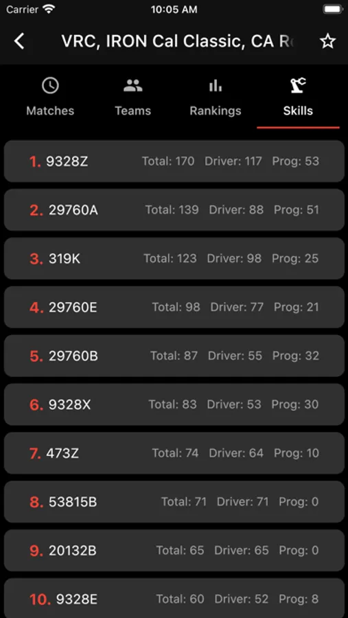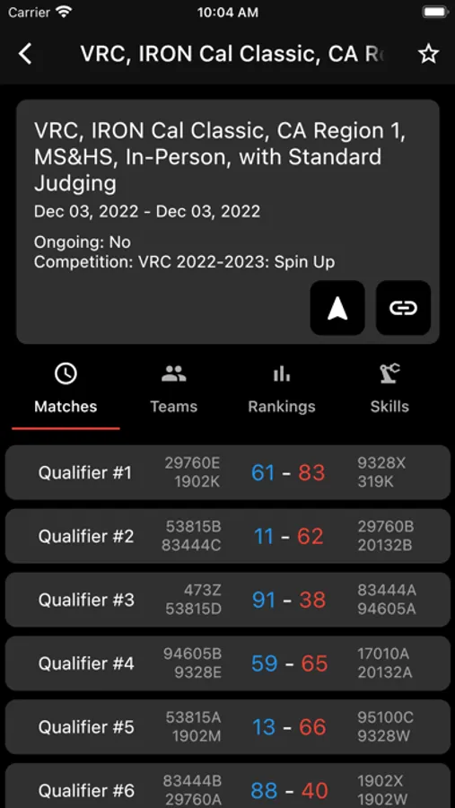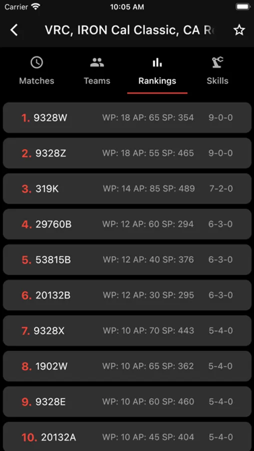 - Live Competition Data (rankings, matches, teams)