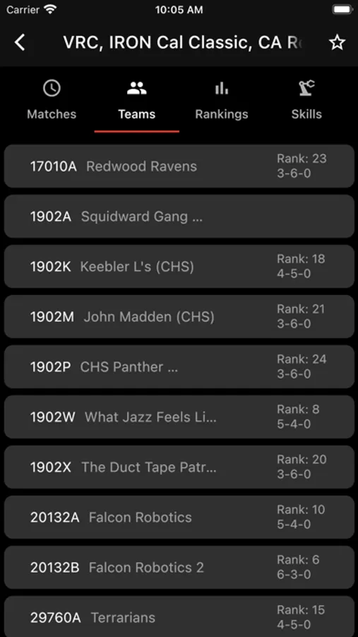VRC Tracker displays live data during VEX Robotics Competitions.