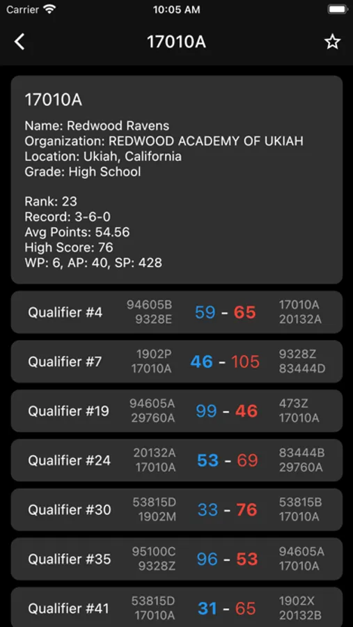 - Team Data (organization, competitions, rankings)