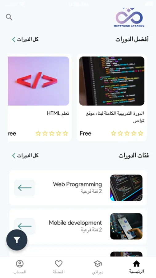 MetaThink Academy هو تطبيق تعليمي يوفر دورات تعليمية أونلاين في مجالات تعليمية مختلفة من نخبة من أفضل المعلمين لدى MetaThink Academy، مع إمكانية وصول مدى الحياة للدورات والشروحات.