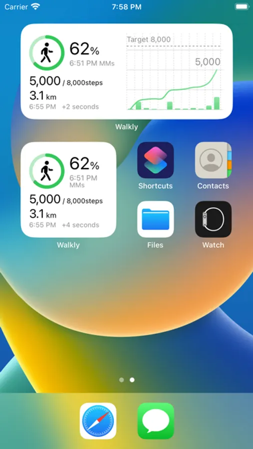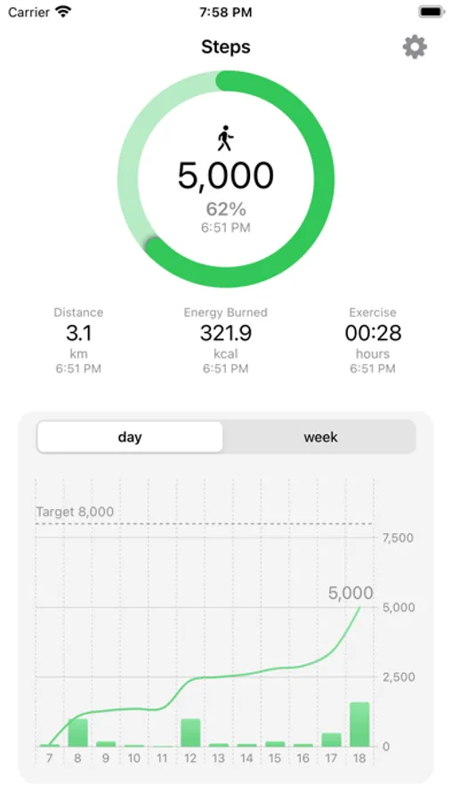 Appleヘルスケアの計測データをリアルタイムに取得することで歩数や関連する情報を表示します。Apple Watchを併用している場合はiPhoneとApple Watchの歩数カウントを重複なしでマージして表示します。