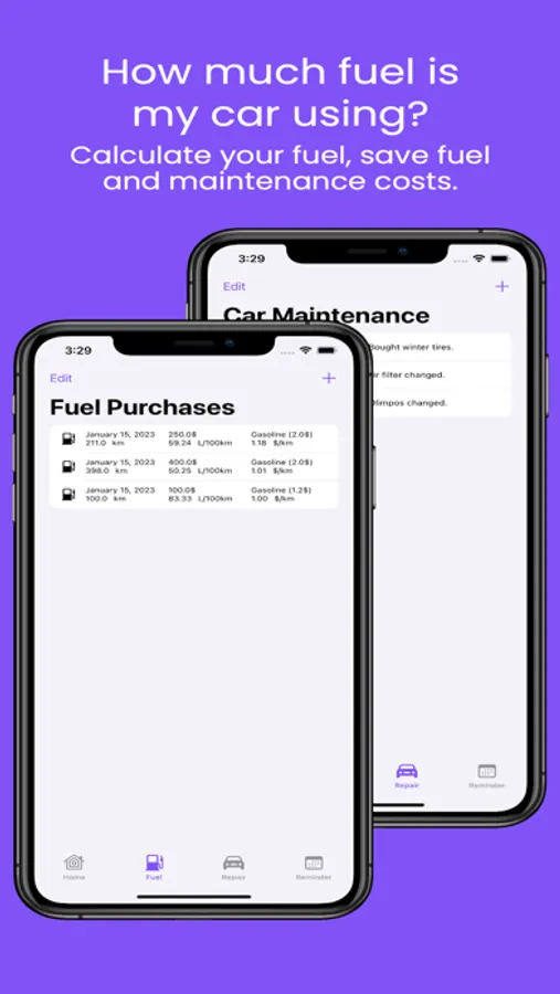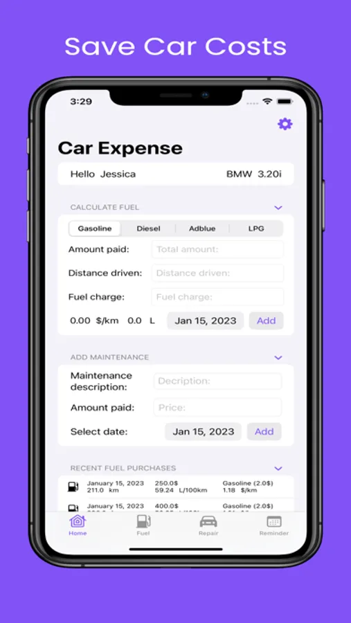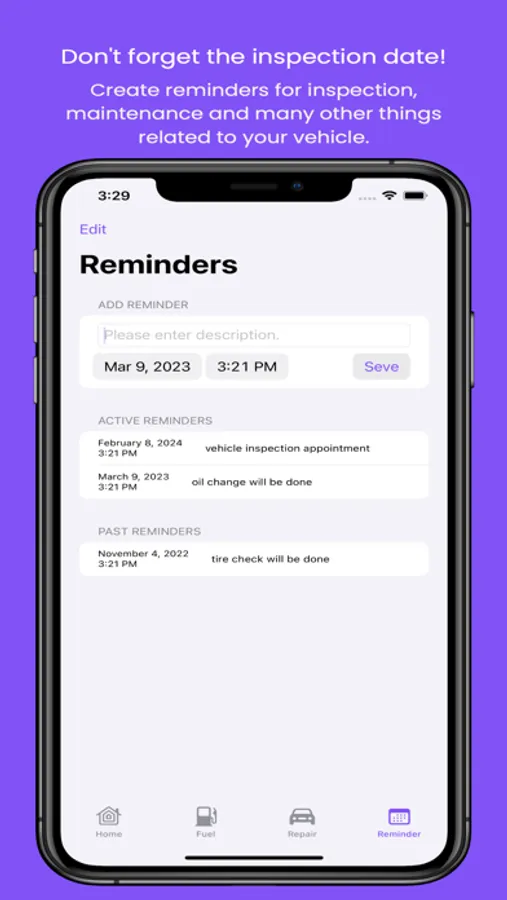 Using the checklist, he will not forget to take the documents, first aid kit or spare keys, and MY CAR EXPENSE will remind you even if you forget the inspection time and the maintenance that needs to be done.