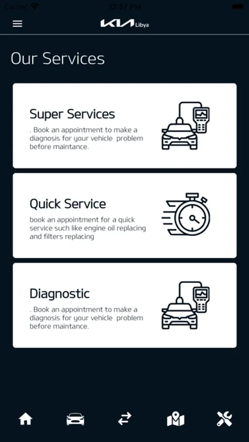 Libya app adds a new level of services to Kia customers in Libya to choose, compare, and book their favorite car, and easily book a maintenance date.