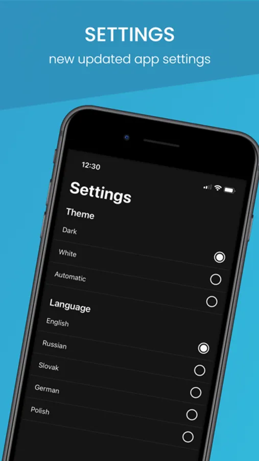 App currently supports languages: English, German, Russian, Slovak, Polish.