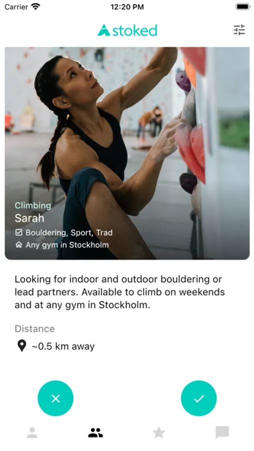 The app functions as a dynamic sports and hobby partner finder, allowing you to tailor your experience based on your interests. Simply choose your preferred activities and Stoked will present you with profiles of nearby users who share your interests. Activity-specific profiles provide detailed information, such as the climbing disciplines a user engages in or their preferred hiking terrain.