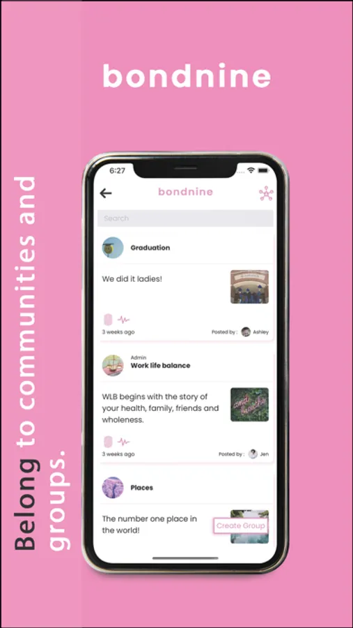 - Groups: Create a group or request to join an existing community with a shared interest.