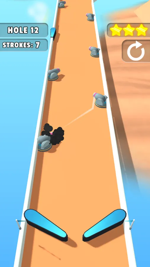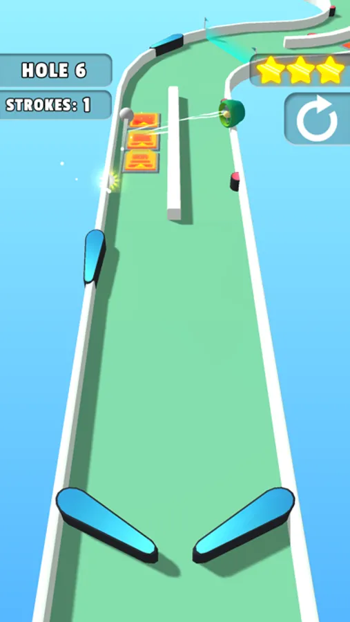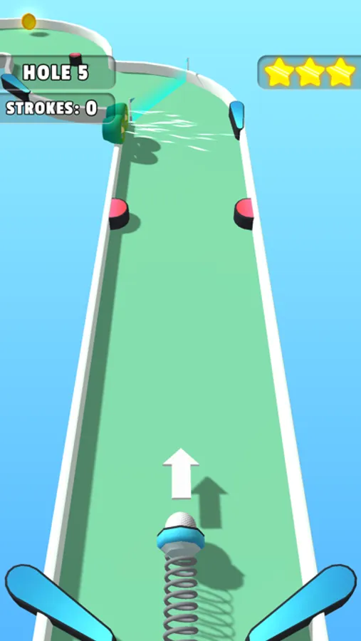 Pull the plunger back and aim the ball, and let go to watch it fly across the green! Then tap the screen to use the flippers to knock the ball further along the course - but be careful, each hit with the flippers counts as a stroke! The more strokes used, the fewer stars you'll get for the level.