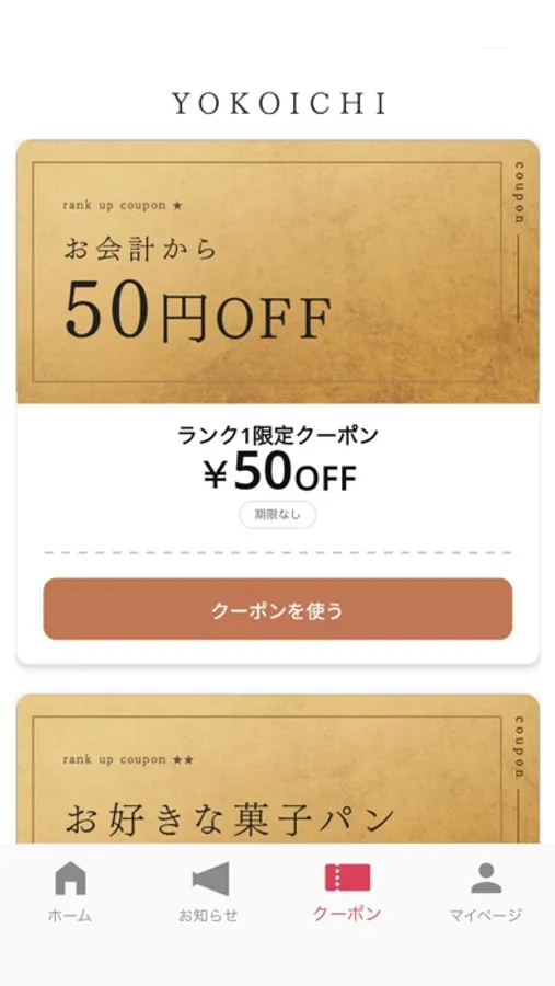 クーポンをレジで見せると割引、その他の特典を得ることが出来ます。