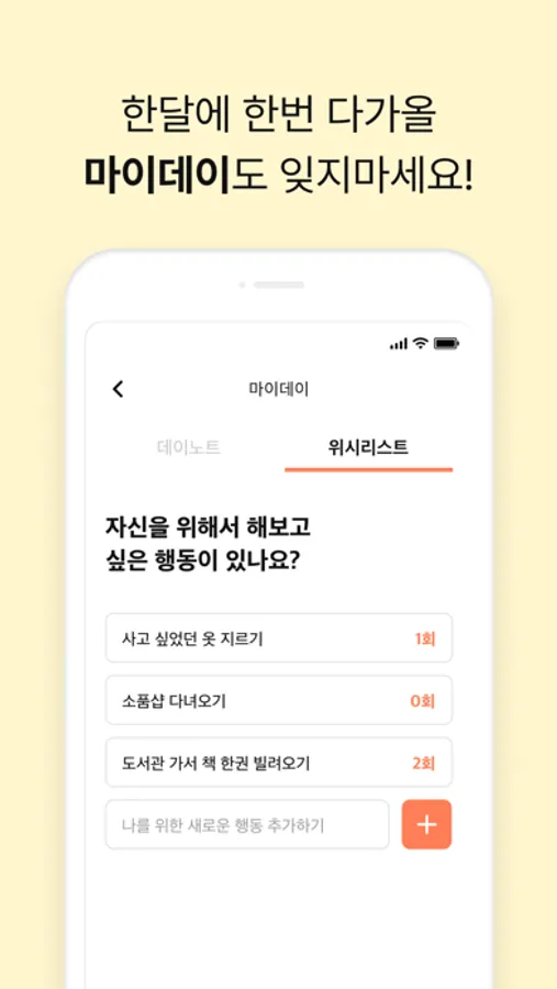 - [위시리스트]에 온전히 나를 위한 행동을 저장해두고,