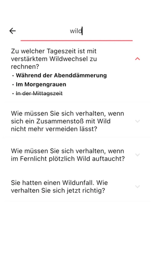 • Der komplette Fragenkatalog der Fahrschule kann durchsucht werden.