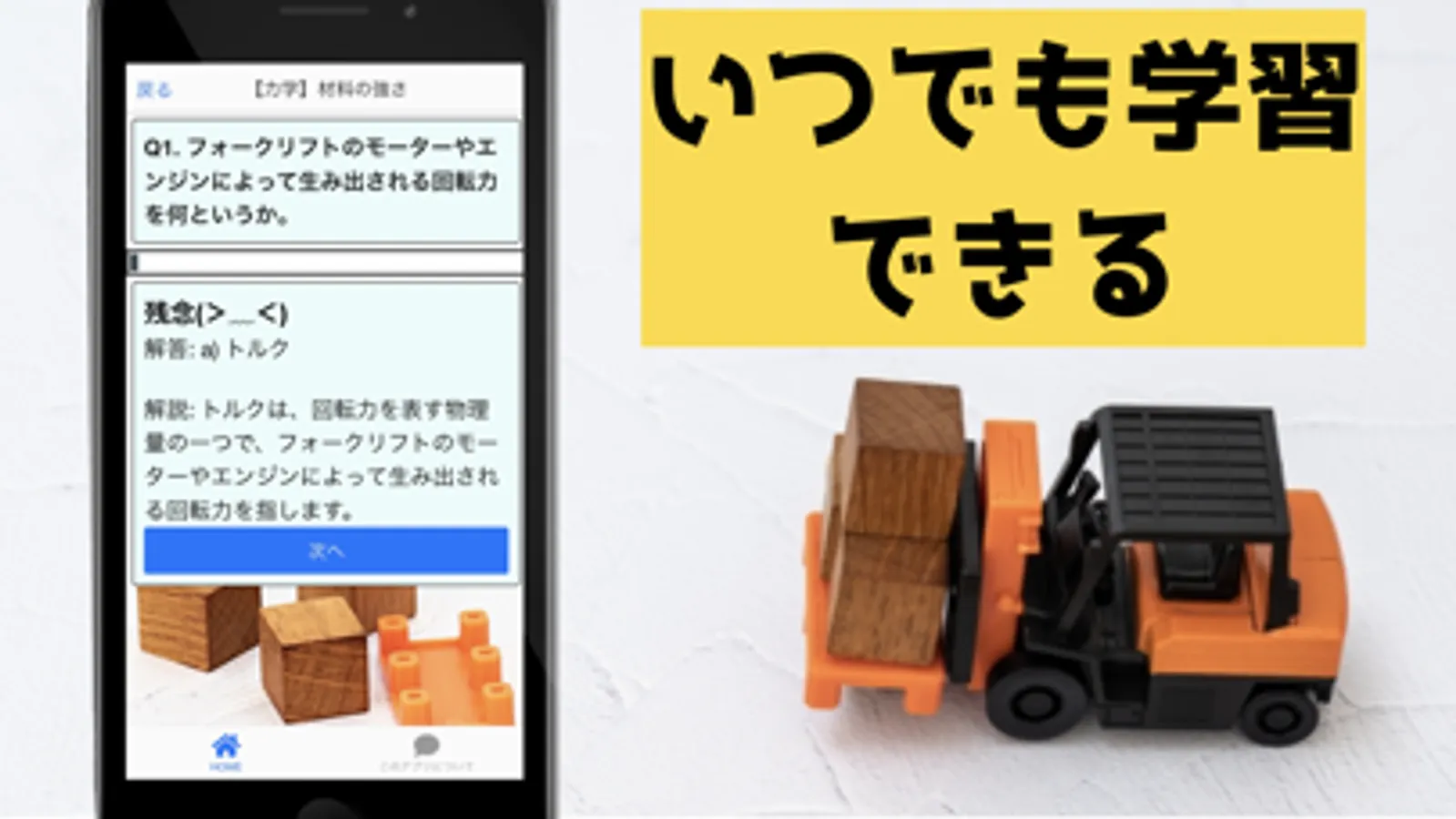フォークリフト運転免許資格の学科対策 学習アプリ