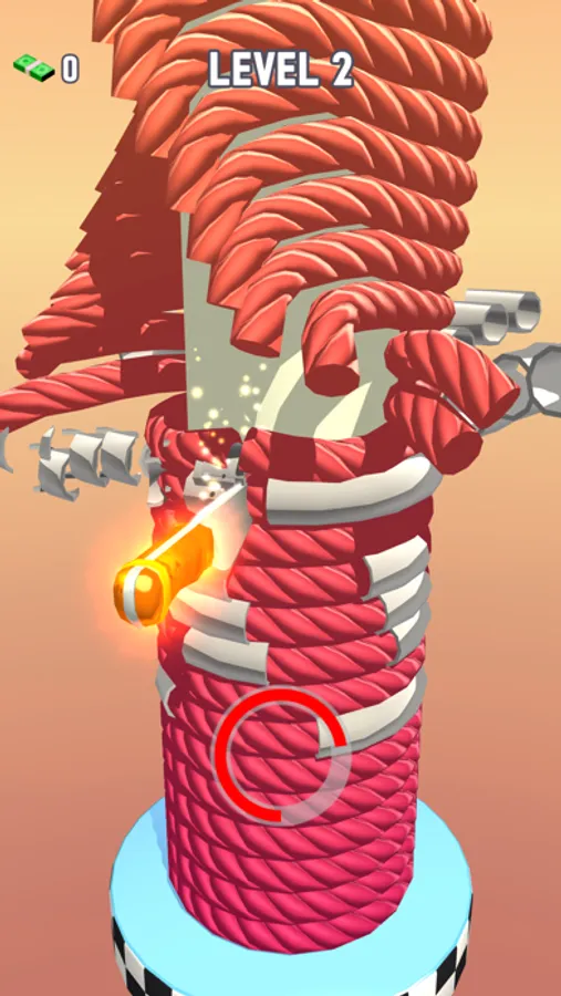 Your knife cuts through colorful ropes that block its descent, but if you hit a metal one, it's all over! Your knife shatters to pieces and you have to start your fall all over again. On each level it will be more challenging!