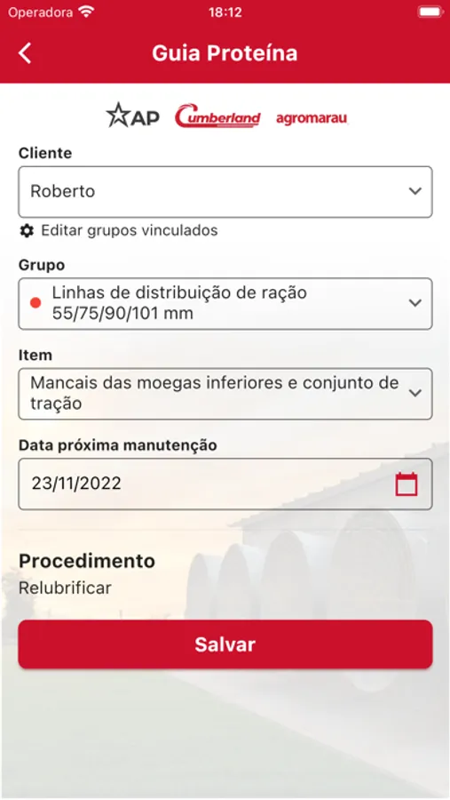 Cliente é feito para escolher o seu segmento, escolher o cliente, ou cadastrar um, selecionar o seu grupo, o item que irá fazer a manunteção, e data.