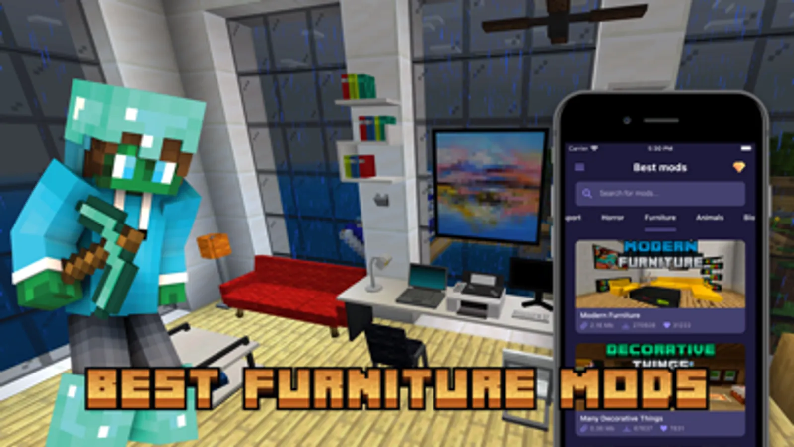 Enjoy interesting mods & addons that will completely change your game experience. Furnish your houses, fight various bosses and monsters, fly on jet planes, ride ancient horses and tanks, shoot rockets and use different weapons, all of this is waiting for you!