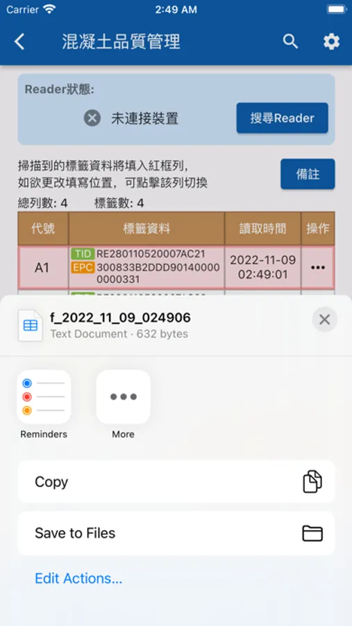 此為台塑企業針對混凝土與相關營造材料試體管理開發之APP,為數位化試體管理之應用,適用於台塑合作之營造廠及實驗室,免去人工抄寫及貼標作業