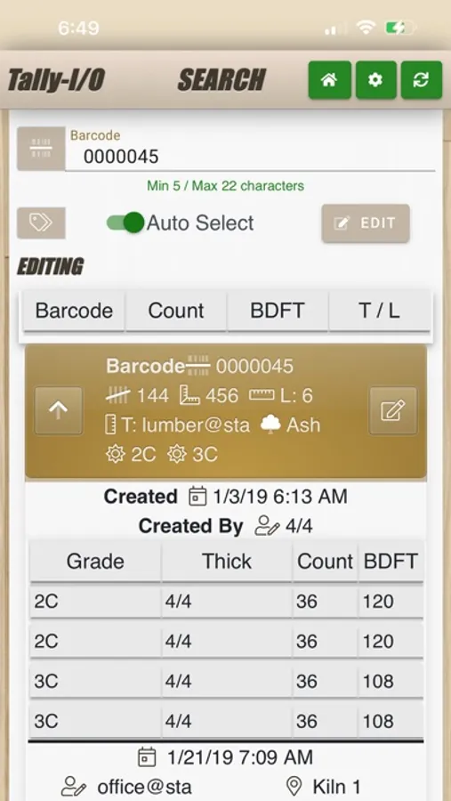 See a running total of the board count and volume while entering the lumber from a separate device