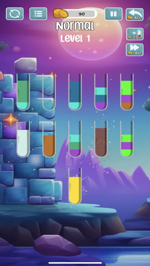 Colorful Liquid Sorting: Arrange and merge different colored liquids in tubes to create harmonious color patterns.