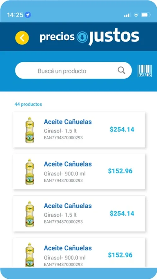 Permite escanear el código de barras de un producto, y si el mismo se encuentra entre los incluidos en el acuerdo puede comparar el precio acordado con el encontrado en el comercio y en caso de no coincidir o no estar disponible, realizar la denuncia correspondiente.