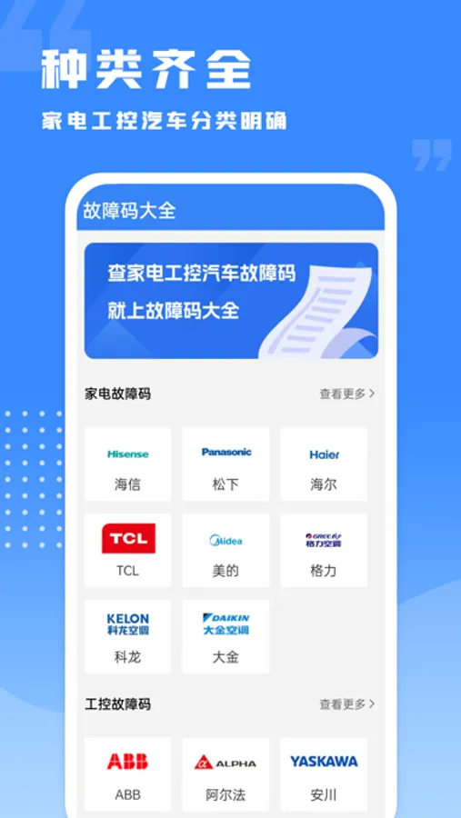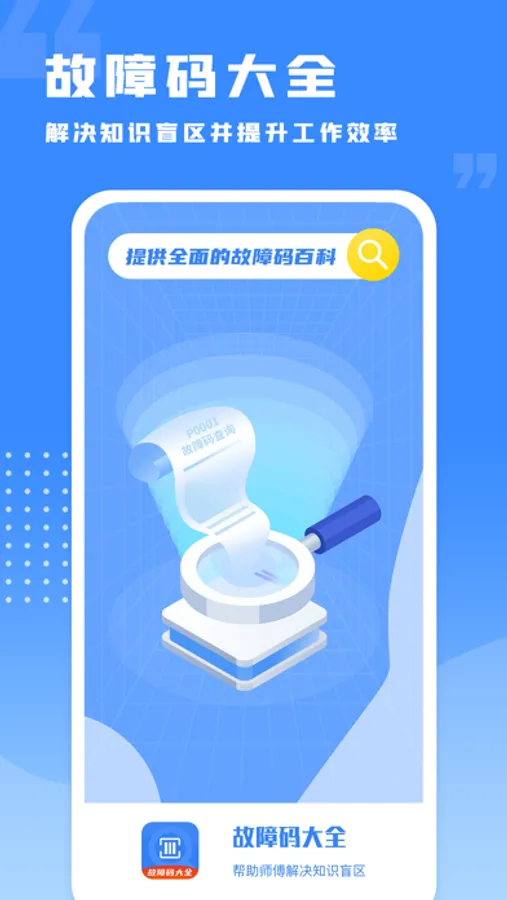 解决师傅在维修时对于故障码,和故障灯不知道打具体代表什么含义,和不知道该故障具体解决方案是什么问题的工具。师傅只需要通过电器故障码,或指示灯,就可明确电器的故障原因,和故障维修的解决方案。目标是减少师傅维修的学习成本,和提升师傅的维修能力,实现只需要使用该工具,所有故障码代表的故障原因和解决方案都可随时查询。