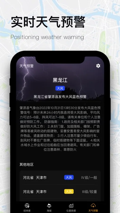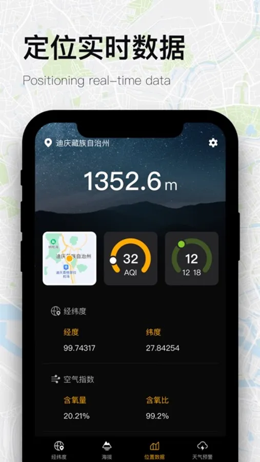 2.实时地理位置数据,包括实时天气信息、磁场、空气质量等详细信息