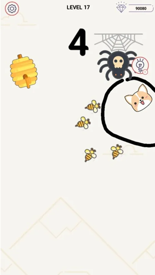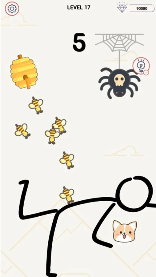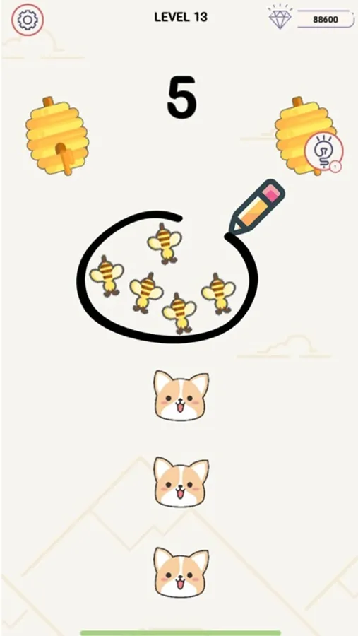 Here comes a cute story about doge and bees. These bad bees doesn't stop attacking, they find ways to burn the doge. Let's draw lines to create wall that protect our poor doge. You need to protect the dog with the painted wall for 5 seconds during the attack of the bees, hold on and you will win the game.