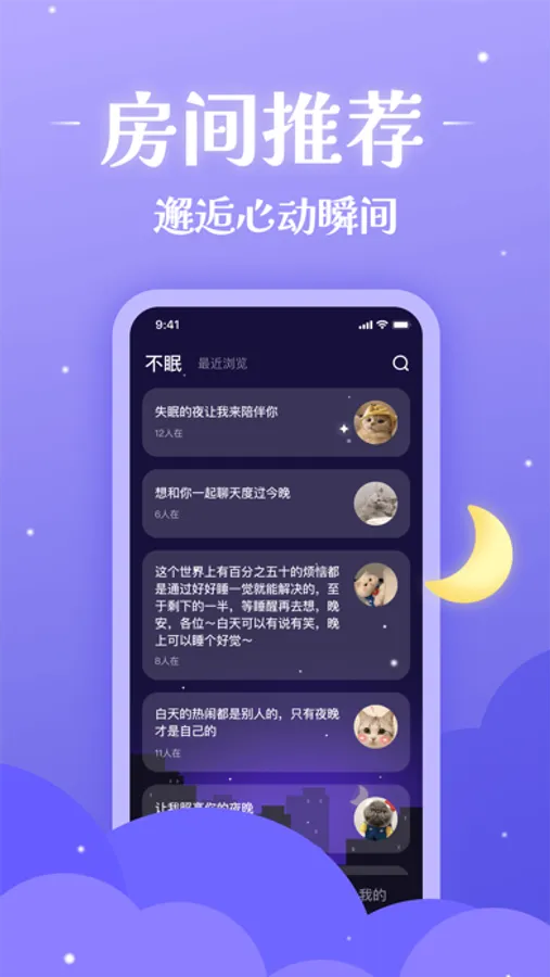 匹配同星球失眠人,睡前的小心思都写在房名里吧。