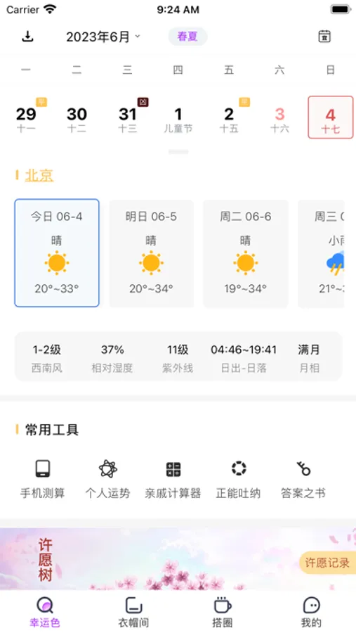 每日幸运色彩穿搭、幸运饮食推荐,专属AI智能衣橱,场景随心搭配,帮助人们通过衣着色彩、日常饮食等调节自己的气场与能量,让每天更加顺心如意。