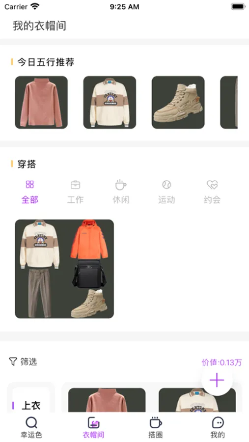 2、我的智能AI衣橱根据色彩、类别和场景穿搭进行分门别类。