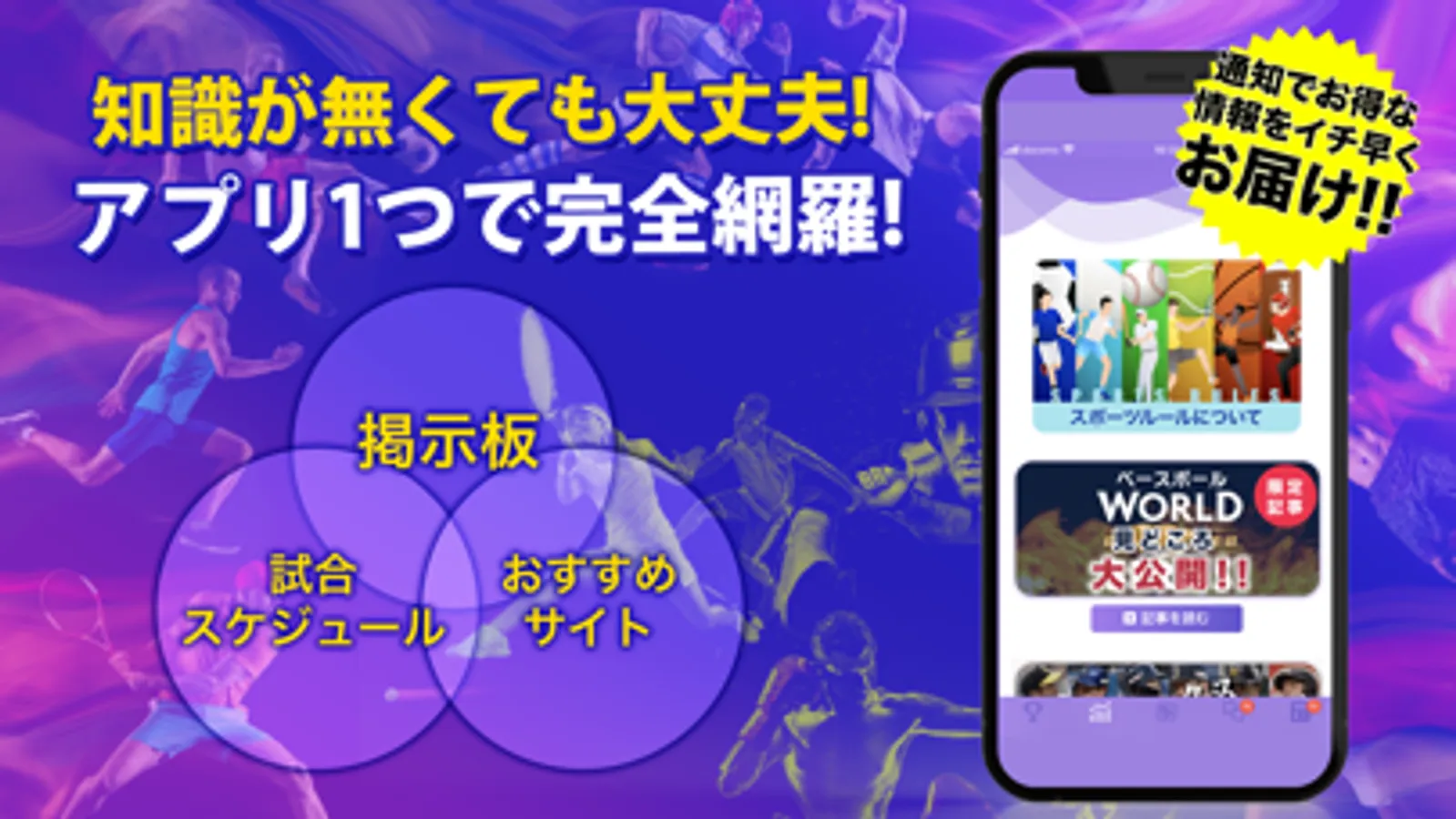 「みんなのスポベ-スポ活アプリ」は、スポベに興味を持っている方が手軽にプレイしていただけるように、スケジュールや用語・必要な知識をまとめた最新トレンドアプリです。
