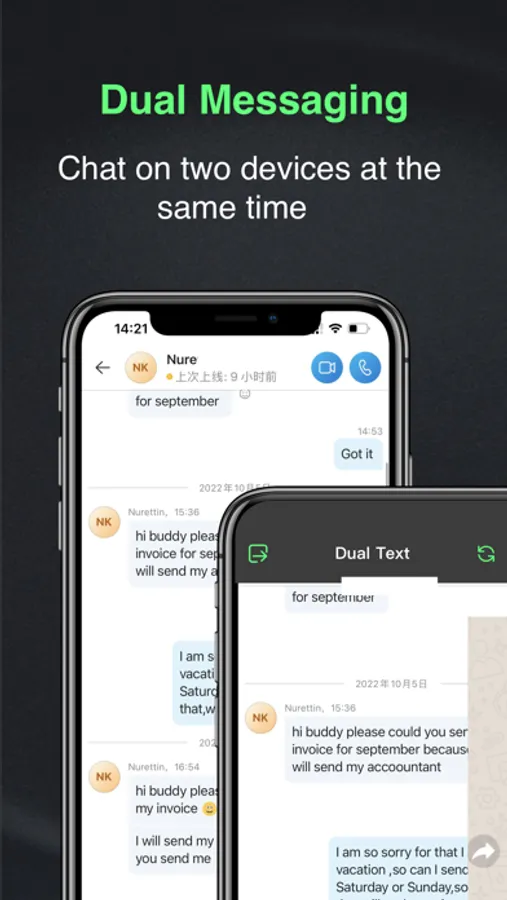 Dual chat: enables you to use 2 different accounts on the same device: one of them personal, the other for business.