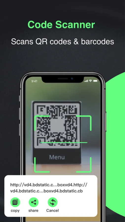 Code Scanner:Scans QR codes and barcodes,just simply open the application and point your camera towards code.
