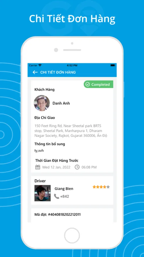 Bạn cũng có thể kiểm tra chi tiết đơn hàng, xem thời gian nhận hàng dự kiến, theo dõi tình trạng giao hàng, thông tin tài xế và nhiều thông tin khác qua ứng dụng này.